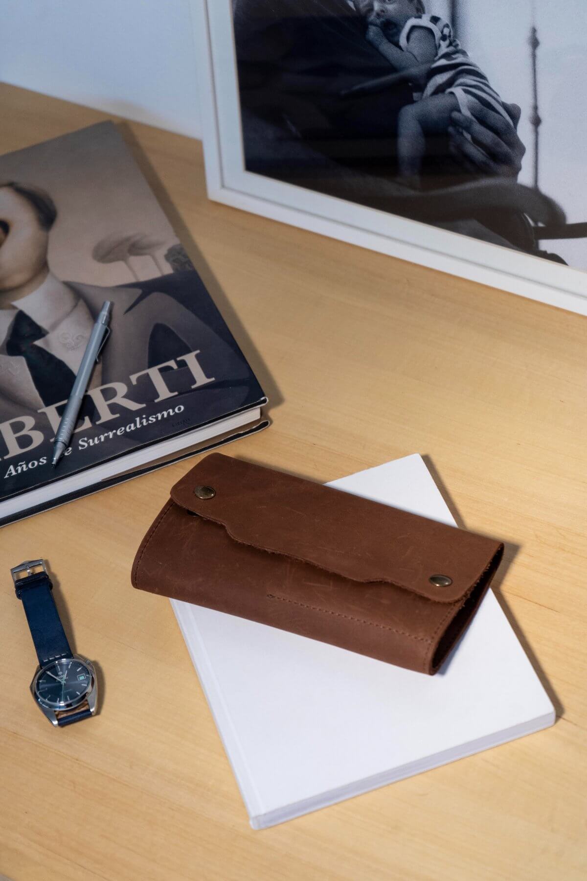Confeccionado a mano en Argentina por un artesano del cuero, está realizado en cuero argentino seleccionado. Es un material resistente que evoluciona con el uso y desarrolla carácter con el tiempo.